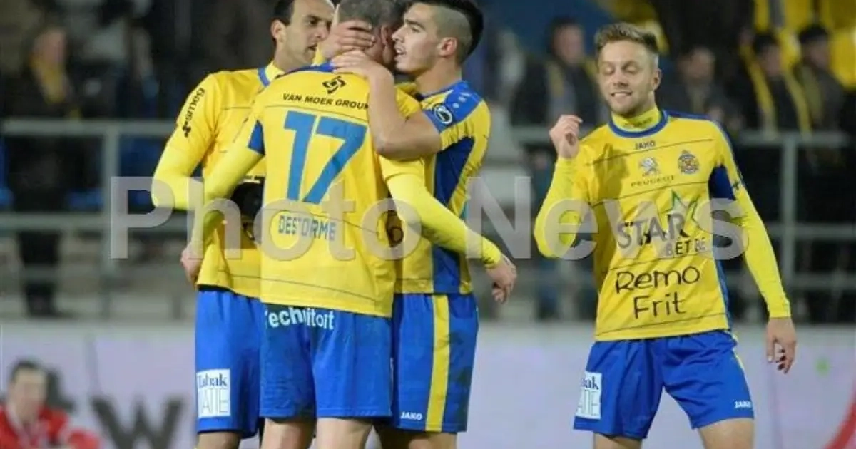 Sélection Waasland-Beveren: Rogiest, Corstjens, Cale, Robson, Hubert, Addy, Henkens, Maric, Ibou, Oumarou, Rowell, Emond, Destorme, Steppe, D’Ulivo, Blondelle, Vandam, Coosemans, Luyckx, Wilmet en Bourabia.