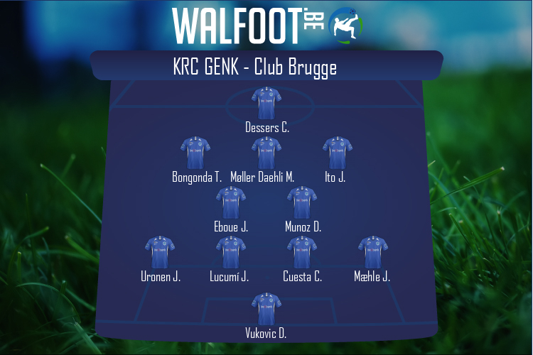 Banc: Casper De Norre - Dries Wouters - Gerardo Arteaga - Sebastien Dewaest - Benjamin Nygren - Paul Onuachu - Luca Oyen - Maarten Vandevoordt - Pierre Dwomoh FC Bruges: Simon Mignolet - Clinton Mata - Brandon Mechele - Simon Deli - Emmanuel Bonaventure Dennis - Ruud Vormer - Mats Rits - Hans Vanaken - Eduard Sobol - Youssouph Badji - David Okereke Banc: Senne Lammens - Eder Balanta - Odilon Kossounou - Michael Krmenčík - Siebe Schrijvers - Federico Ricca - Ethan Horvath - Charles De Ketelaere - Ignace Van Der Brempt |