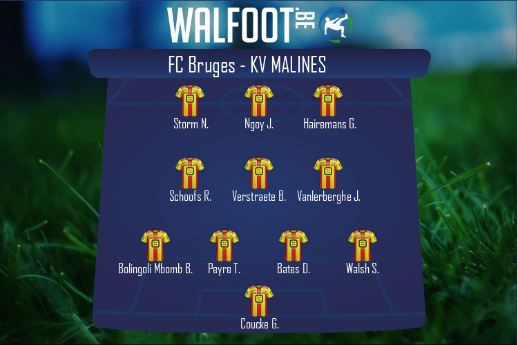 Banc: Eder Balanta - Roman Yaremchuk - Noa Lang - Nick Shinton - Senne Lammens - Cisse Sandra - Lynnt Audoor - Bjorn Meijer - Tajon Buchanan KV Malines: Gaëtan Coucke - Sandy Walsh - Jordi Vanlerberghe - Thibault Peyre - David Bates - Boli Bolingoli Mbombo - Geoffrey Hairemans - Birger Verstraete - Rob Schoofs - Nikola Storm - Julien Ngoy Banc: Yannick Thoelen - Iebe Swers - Dries Wouters - Jannes Van Hecke - Yonas Malede - Jorge Hernandez - Frederic Soelle Soelle |