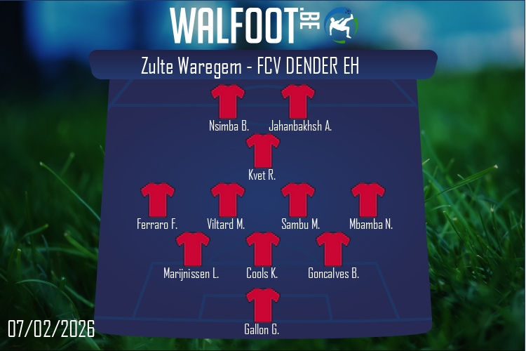 Vivez le match entre Zulte Waregem et FCV Dender EH en LIVE, en simultané avec d'autres supporters.