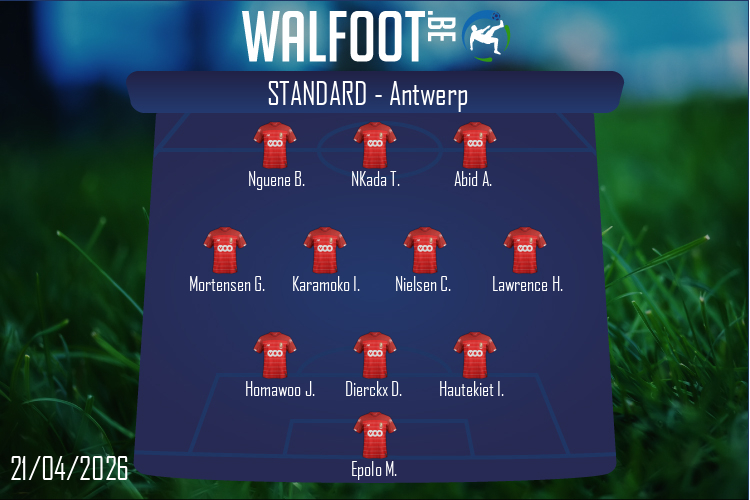 Trois jours après sa victoire à Charleroi dans le choc wallon, le Standard reçoit l'Antwerp ce mardi soir dans le cadre de la quatrième journée des Europe Play-Offs. Une rencontre pour laquelle Vincent Euvrard titularise Daan Dierckx et Bernard Nguene au détriment de David Bates et Rafiki Saïd, et remplace Marco Ilaimaharitra et Dennis Ayensa, blessés, par Ibrahim Karamoko et Timothé Nkada.