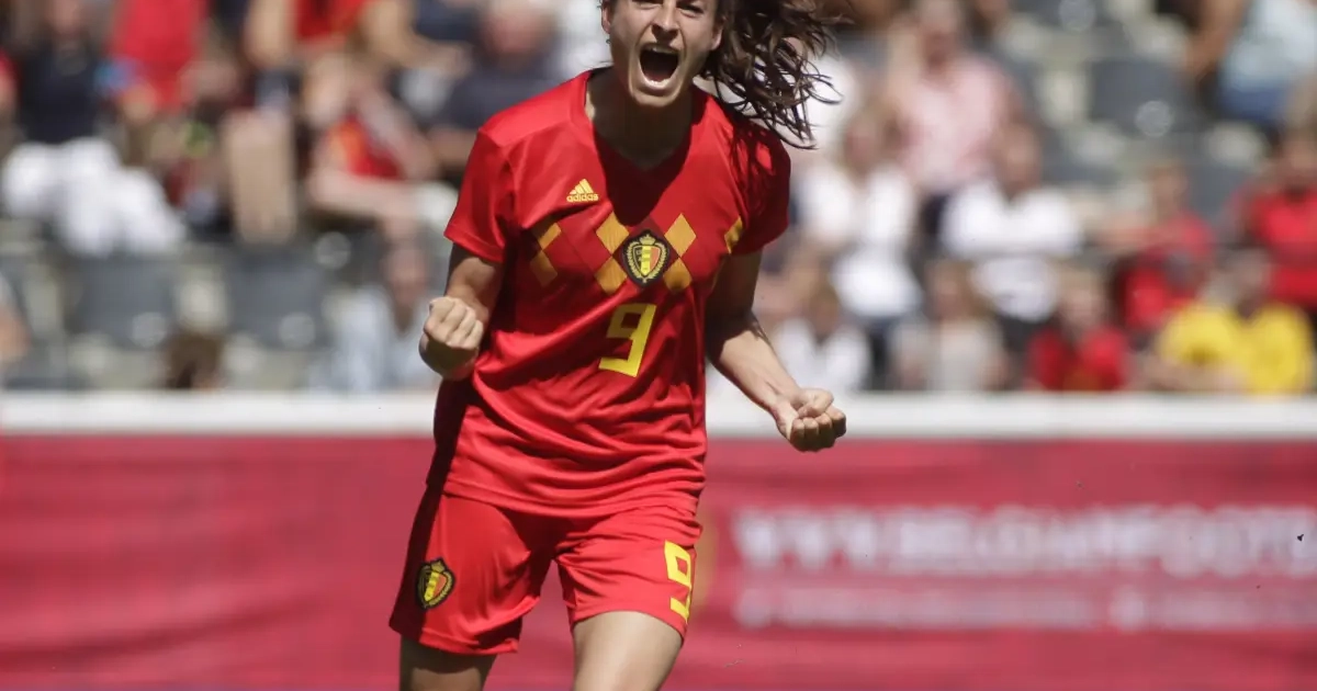 A l'assist sur le but d'ouverture, Shari Van Belle est cette fois (presque) à la conclusion. Sa frappe lèche la barre transversale. Quel début de match des Red Flames!