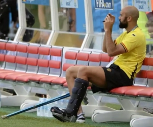 Juste après la qualification des Diables rouges pour les quarts de finale, les joueurs ont été salués leur public. Malgré son état, Anthony Vanden Borre a accompagné ses potes.