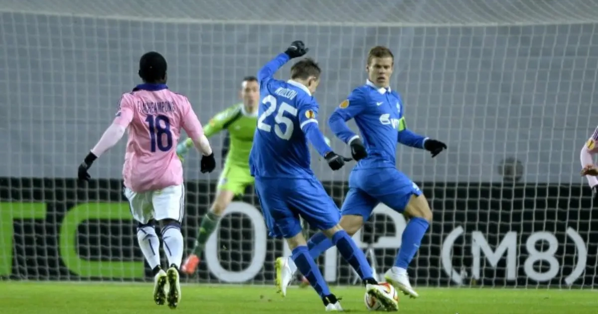 Les Bruxellois sortirent ensuite à la tête de l’eau, sans pour autant s’approcher du but moscovite. Cependant, peu avant la demi-heure de jeu, après un excellent travail d’Ibrahima Conté sur le flanc droit pour fixer Yuri Zhirkov, le centre de Youri Tielemans trouvait Aleksandar Mitrovic, esseulé au second poteau.