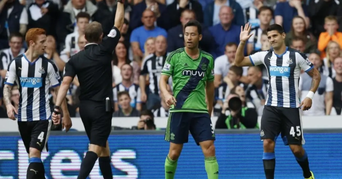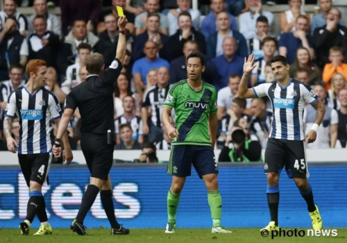 En effet, après quelques secondes sur le terrain, le nouvel attaquant de Newcastle s'est distingué par un tacle très dangereux qui lui a valu une carte jaune. L'arbitre aurait pu sortir le rouge.