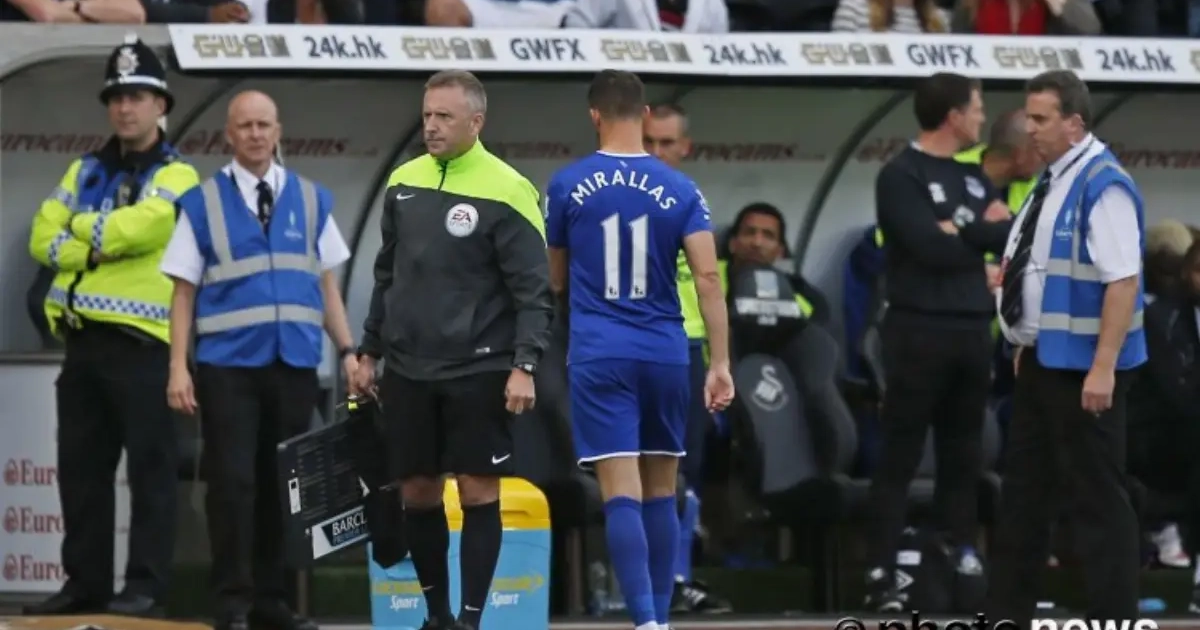 Apres son entrée en jeu face à Swansea,Mirallas est resté deux minutes sur la pelouse avant de se faire exclure. https://t.co/EnAcGOKyJ1