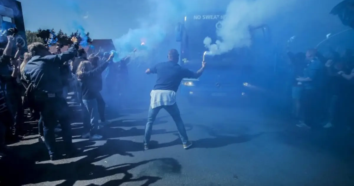 Les supporters du Club de Bruges étaient des milliers à attendre le bus de leur équipe. Quand celui-ci est enfin arrivé, il a été touché par un feu de bengali allumé à proximité. Le verre et le feu bengali n’allant pas bien ensemble, une douzaine de fenêtres du bus ont éclatées.