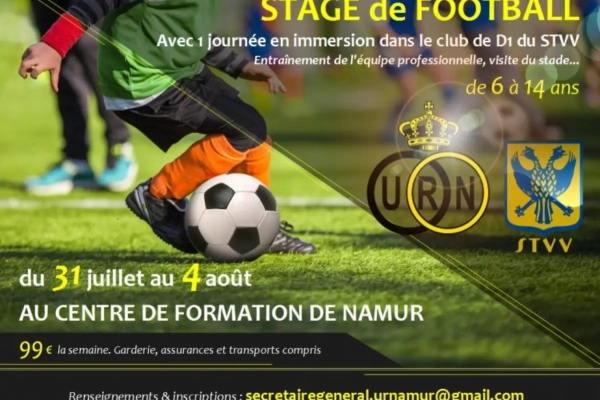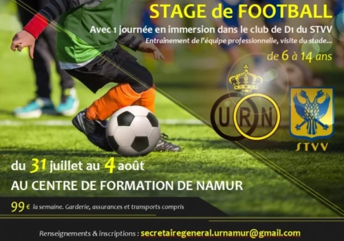 Vous souhaitez que votre enfant fasse un stage dans un club de football aux installations impeccables, le tout encadré par des formateurs compétents? Alors n'hésitez pas à vous inscrire au stage de l'UR Namur, du 31 juillet au 4 août. C'est réservés aux enfants âgés de 6 à 14 ans.