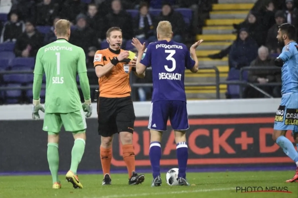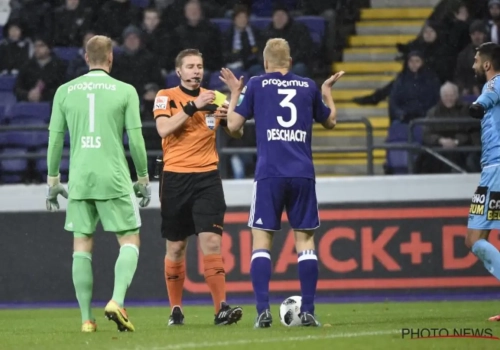 Lors d'un match très animé contre Zulte (4-3), Deschacht avait pris une jaune en première mi-temps sur une faute sur Thorgan Hazard. En deuxième période, le défenseur anderlechtois prend une deuxième jaune après avoir retenu Jens Naessens.