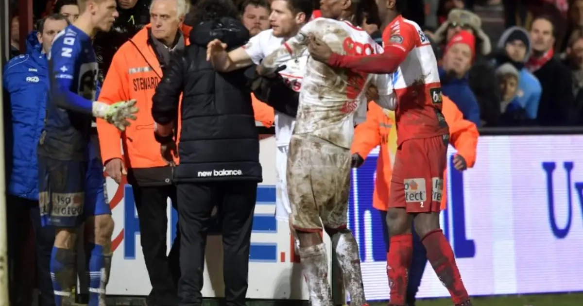 Le dernier match des Rouches joue les prolongations. Exclu à cette occasion, Uche Agbo était sorti du terrain sous les chants racistes et anti-wallons. Le milieu de terrain avait également adressé des doigts d'honneur au public de Courtrai et lancé une bouteille d'eau dans sa direction.