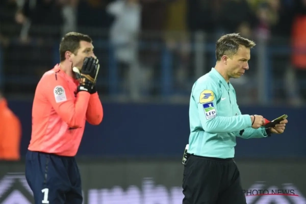 Le gardien de but de Caen, Rémy Vercoutre, a été exclu par l'arbitre pour avoir vivement contesté la manière avec les joueurs lillois ont fêté leur but.