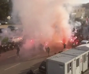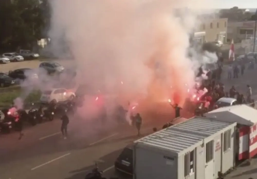 Le car havrais avait été caillassé par quelques dizaines de supporters ajacciens, avant que des bombes agricoles soient lancées et endommagent son système hydrolique. Bloqué, le véhicule n'a pu atteindre le stade corse.