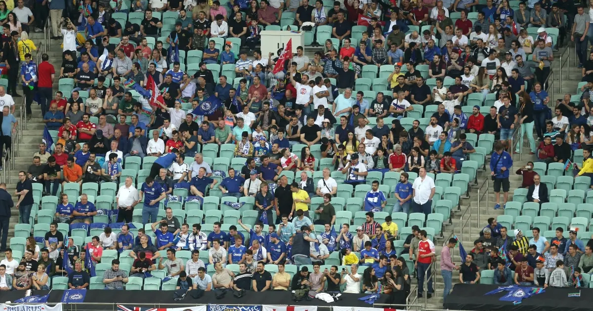 Les tribunes du stade de Bakou, bien éloignées du terrain, sont loin d'être remplies. Peu d'Anglais ont pu faire le déplacement et les Azéris ne sont pas présents au rendez-vous.