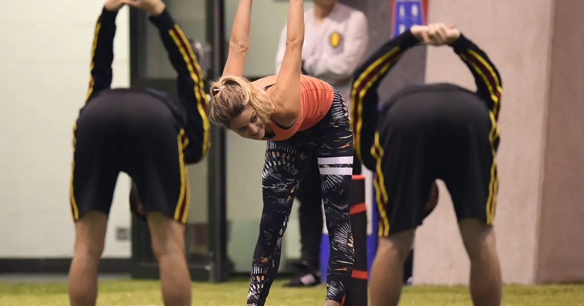 Van Avermaet est une professeure de yoga et un coach en alimentation réputé. Elle donne des séances d'entraînement pour améliorer la souplesse. Les Diables Rouges ont dû s'y coller même si certains se sont mieux débrouillés que d'autres.