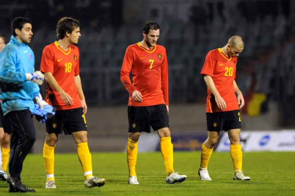 La compo des Diables de l’époque: Proto, Vanden Borre, Van Buyten, Vermaelen (Van Damme), Vertonghen (Daems), Gillet, Simons (Simaeys), Mirallas (De Sutter), Martens, Huyzegems, Sonck (Hazard).