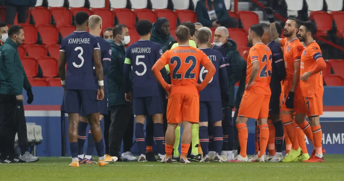 Le Paris Saint-Germain et l’Istanbul Basaksehir ont à peine disputé une quatorze minutes quand l’arbitre central, Ovidiu Hațegan, a stoppé le jeu et s’est dirigé vers le banc turc pour expulser l’un des membres du staff turc, l’ancien international camerounais Pierre Webo. Ce dernier a ensuite pointé du doigt le quatrième arbitre du match, Sebastian Colţescu. Les images ont permis de démontrer que ce dernier avait tenu des propos racistes à l’encontre de l'ancien attaquant au moment de réclamer son exclusion auprès de l'arbitre central.