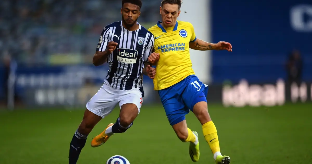 À l'image de son équipe, Leandro Trossard (à droite) a perdu son duel face à West Bromwich Albion ce samedi. Brighton est en danger.