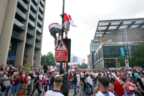 À côté des scènes enthousiastes autour de Wembley à l'approche de la finale de l'Euro, quelques supporters ont tenté de forcer l'entrée et de pénétrer dans l'enceinte du stade sans ticket.