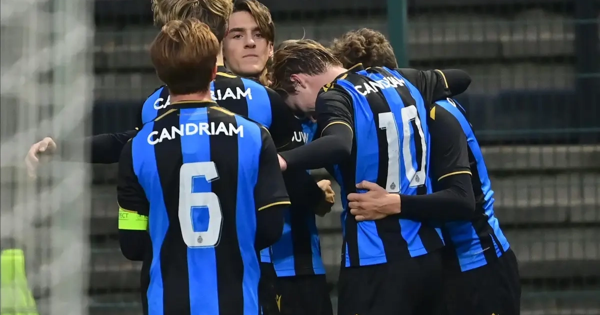 Le Club de Bruges a très bien débuté la rencontre puisque Mathis Servais a ouvert le score (19e), 0-1. Juste avant la pause, les Gazelles obtenaient un penalty après une faute de main d'El-Chadaille Bitshiabu dans la surface. Le Parisien est expulsé tandis qu'Arne Engels a transformé la sentence sans trembler (44e), 0-2.