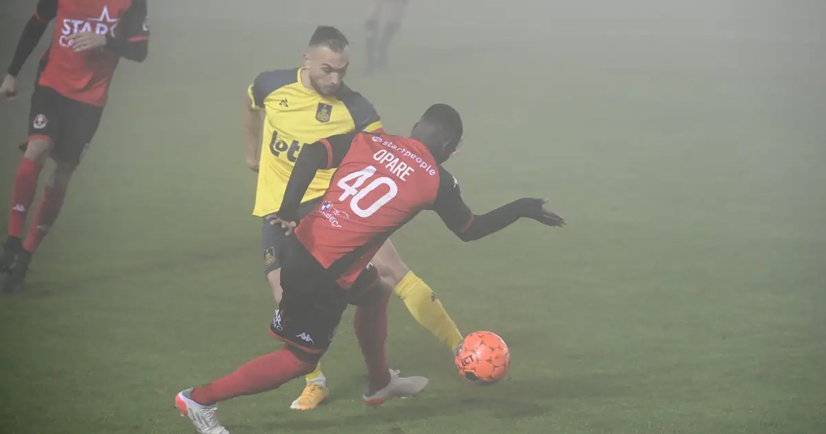 Alors que l'Union Saint-Gilloise, pourtant réduite à dix, menait 0-2 à Seraing à la pause, la rencontre été arrêtée à cause des conditions climatiques. Un épais brouillard avait pris possession du Pairay réduisant ainsi considérablement la visibilité au fil des minutes.
