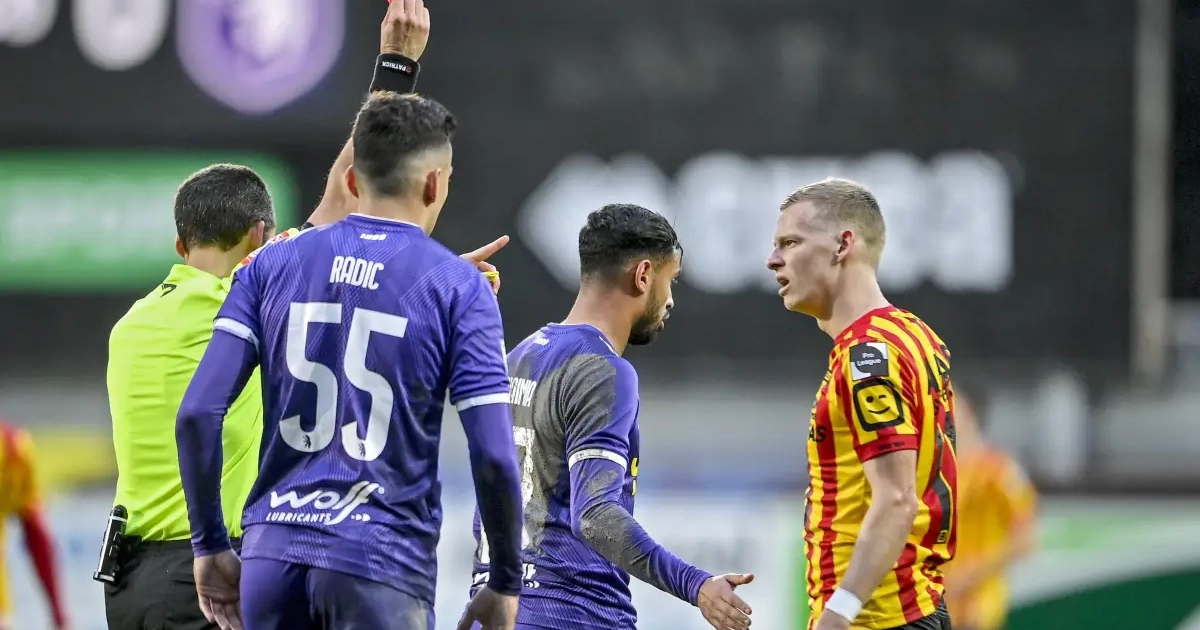 La carte rouge brandie par Bert Put à Bryan Heynen résultait d'une intervention fautive sur l'attaquant Sory Kaba, lors de la défaite contre OHL (2-1).