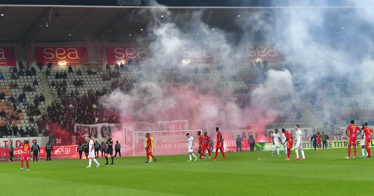Suite aux fumigènes envoyés par les supporters, la rencontre a été définitivement arrêtée à la 40ème minute. L’#ASNL évoluera en National la saison prochaine.