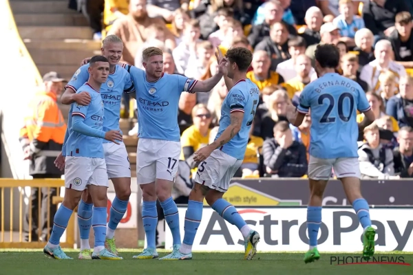 Au Molineux Stadium, il ne fallait pas arriver en retard. Jack Grealish, oublié au marquage, profitait d'un centre de Kevin De Bruyne pour ouvrir le score du pied gauche (1e), 0-1. Piqués à vif, les Wolves tentaient de réagir dans la foulée via une belle frappe de Guedes (4e). Haaland faisait le break d'une frappe du droit (16e) pour signer son 11ème but de la saison en Premier League.