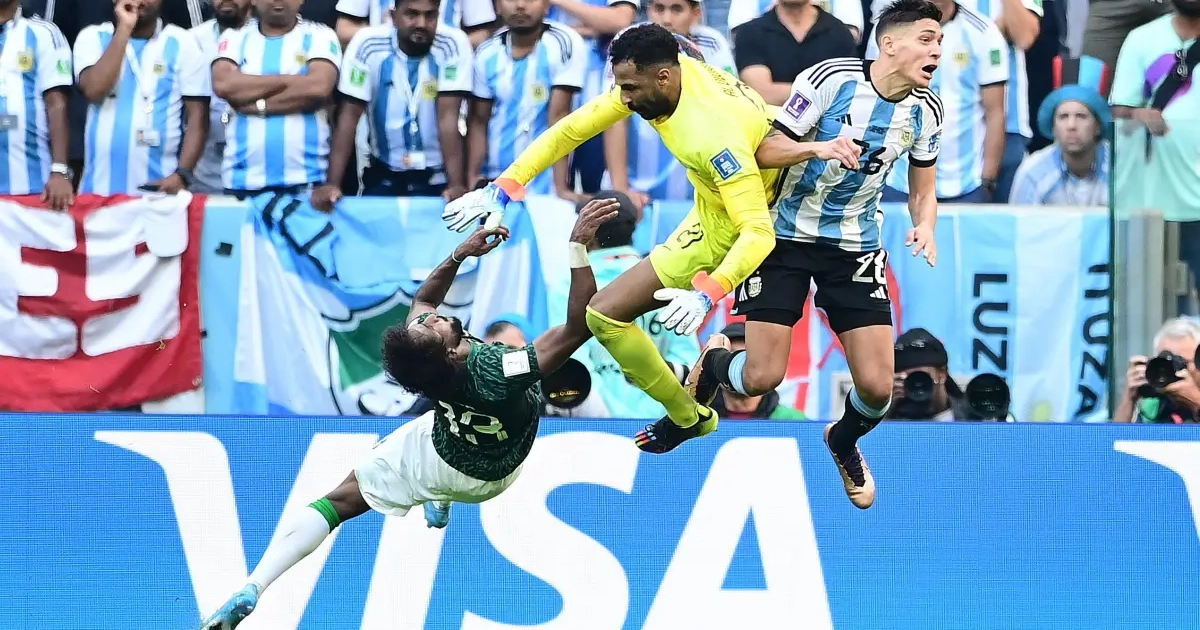 Alors que l'on disputait les arrêts de jeu de la rencontre et que l'Argentine poussait pour égaliser, le gardien de l'Arabie Saoudite, Al-Owais, a violemment percuté son défenseur, Yasser, sur une sortie aérienne.