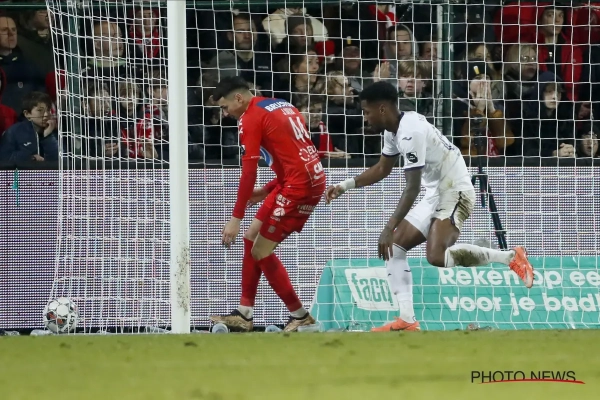 Il y a eu bon nombre d'occasions franches des deux côtés, mais Anderlecht égalisera au final sur une grossière incompréhension entre Kristof D'Haene et son gardien Tom Vandenberghe. "Quand tu mènes 2-1 et que tu prends l'égalisation de cette façon à la 83e, ça fait mal. Je crie à Kristof que je suis là, mais je crois qu'il ne m'entend pas à cause des supporters", regrette le portier courtraisien.
