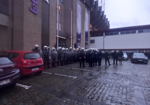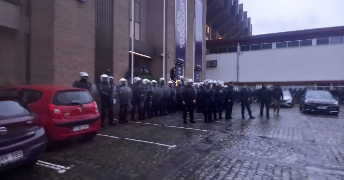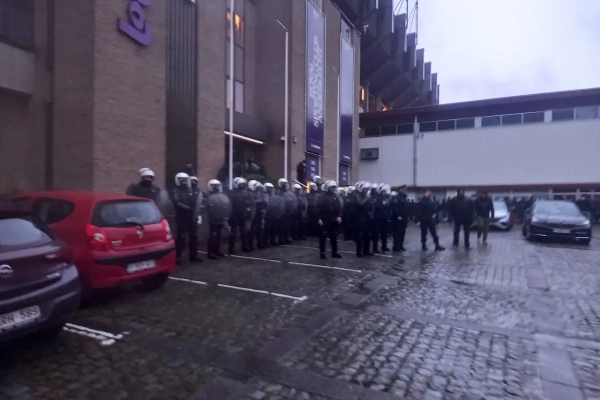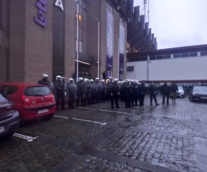 De hoofdingang van Anderlecht wordt door tientallen agenten bewaakt. Buiten staan veel heethoofden. Een deel geraakte ook in de VIP. #RSCA pic.twitter.com/luCsREargM