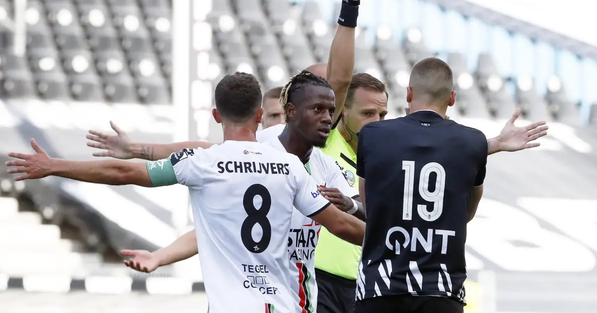 Et cette décision n'est pas aussi polémique que celle d'accorder un penalty, à la 84e, à Nicholas Opoku : Mehdi Boukamir ne paraît même pas toucher son vis-à-vis, ou bien... alors qu'Opoku avait déjà entamé sa chute. Le VAR ne corrigera pas ce qui semble être une erreur de Mr Verboomen.