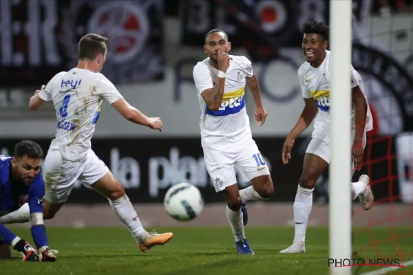 Loic Lapoussin a brisé les espoirs du RWDM ce jeudi soir en envoyant une frappe en pleine lucarne alors qu'on jouait les derniers instants de la rencontre. Le numéro 10 de l'Union est alors célébrer devant les fans molenbeekois.
