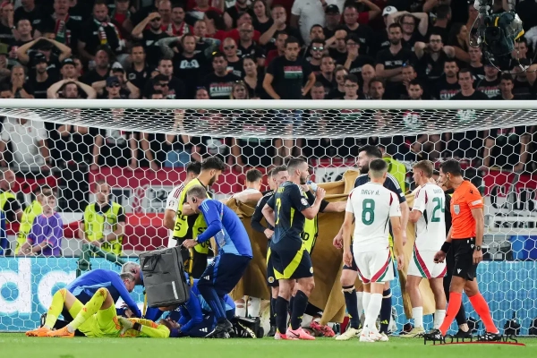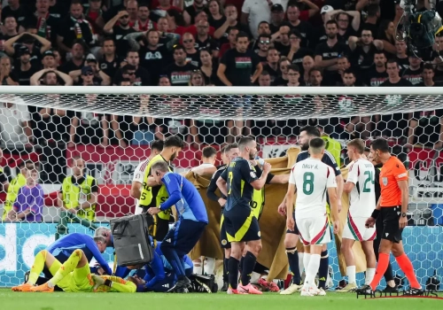 Mais un autre fait de jeu aura également marqué les esprits : le terrible contact entre Barnabas Varga et le gardien de l'Ecosse, Angus Gunn. Varga a dû être emmené sur civière, ce qui a donné lieu à une scène assez surréaliste, les soigneurs rentrant sur le terrain...en marchant.
