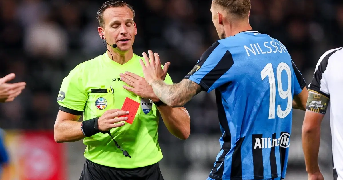 Raphael Onyedika a été expulsé après un tacle, certes à côté du ballon, mais qui ne semblait pas mériter un carton rouge. Lui-même et ses coéquipiers ont été visiblement choqués par la décision de l'arbitre Nathan Verboomen.