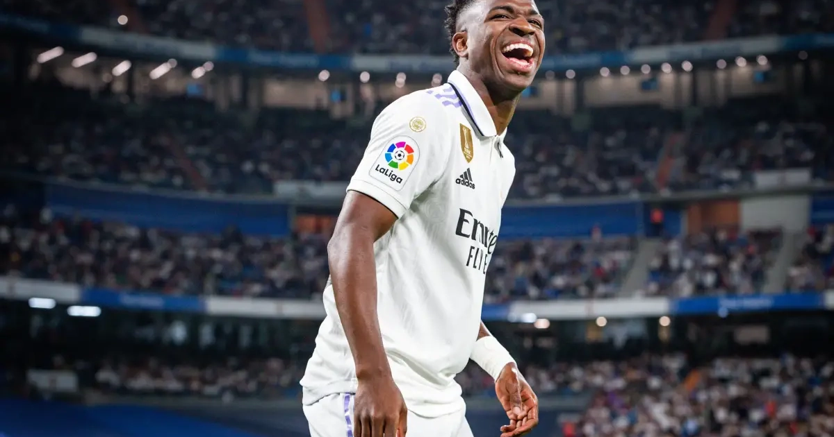 La principale cible des supporters Citizens a vu le message. Pour y répondre, Vinícius a réagi en pointant du doigt le badge des 15 Ligues des Champions que le Real Madrid a remportées dans son histoire.