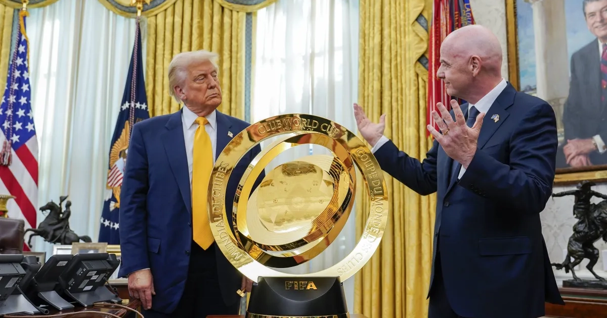 Donald Trump était aux côtés de Gianni Infantino pour lui montrer le trophée de la Coupe du Monde des clubs ce jeudi.