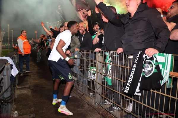 Au coup de sifflet final, après encore quelques scènes de tension dans les ultimes instants, c'est tout un groupe qui a pu courir sur le terrain pour aller faire la fête avec ses supporters venus en nombre (plus de mille Louviérois avaient fait le déplacement).