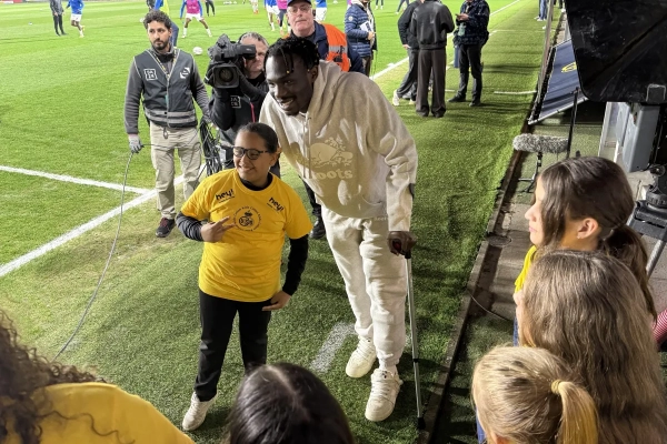 Son état ne lui ayant pas permis de se lâcher en dansant sur les basses émanant du vestiaire saint-gillois comme il le fait d'habitude, l'attaquant a vécu la soirée autrement. En acceptant avec un plaisir non surjoué de prendre des photos avec des enfants au bord du terrain, et en répondant à nos questions.