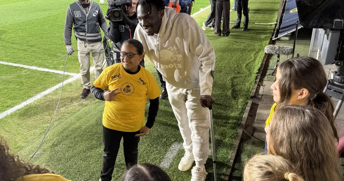 Promise David était présent au Parc Duden, deux semaines après sa grave blessure à la hanche. Malgré l'épreuve lui faisant face, il n'a rien perdu de sa positivité.