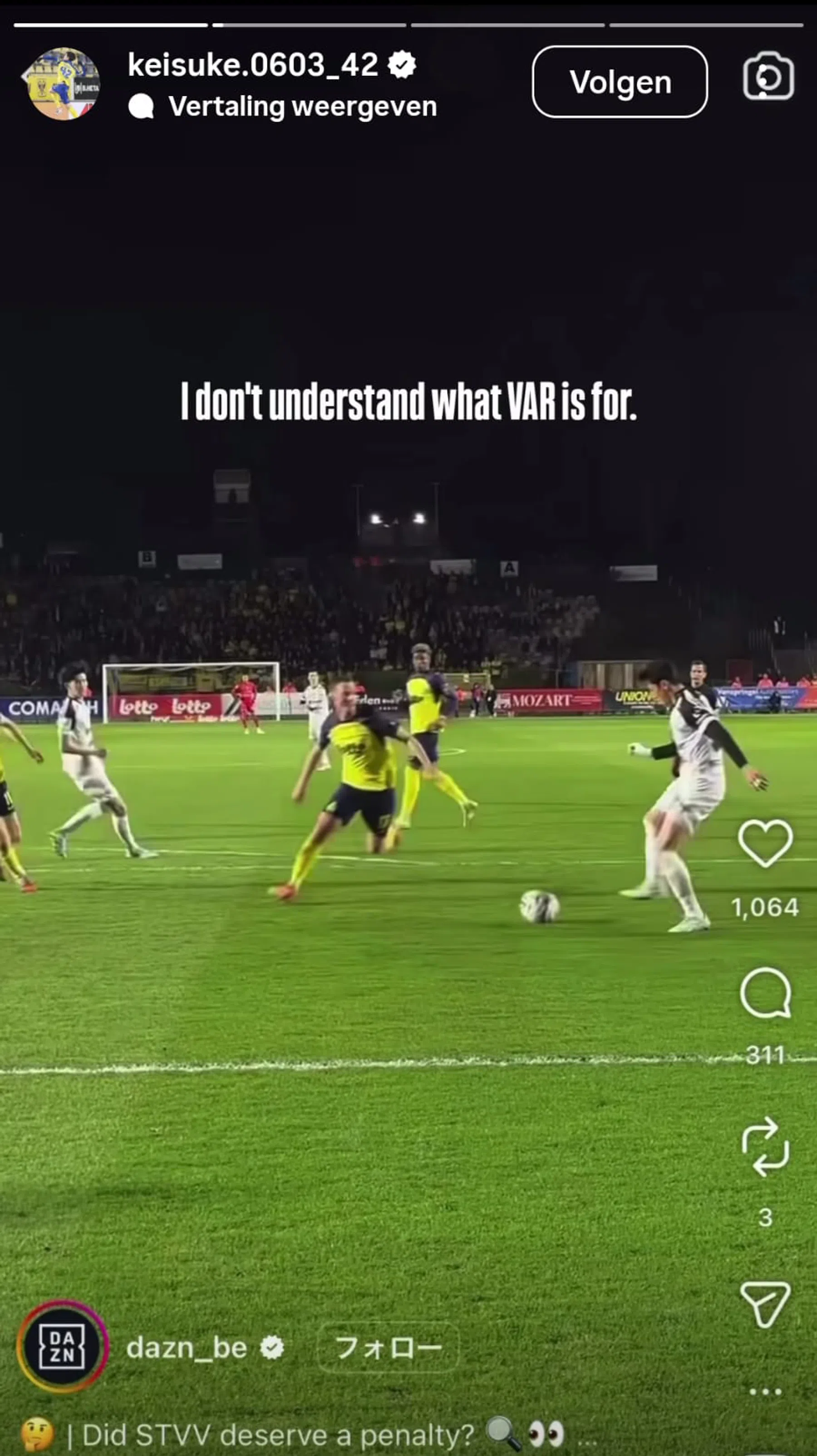Première journée de Playoffs, première polémique. Il semblait clair que STVV aurait dû obtenir un penalty en fin de rencontre face à l'Union, quand Kevin Mac Allister a balancé Kaito Matsuzawa dans le rectangle. Du côté de l'USG, on assure que l'Argentin "jouait le ballon", mais les images laissent sceptiques.